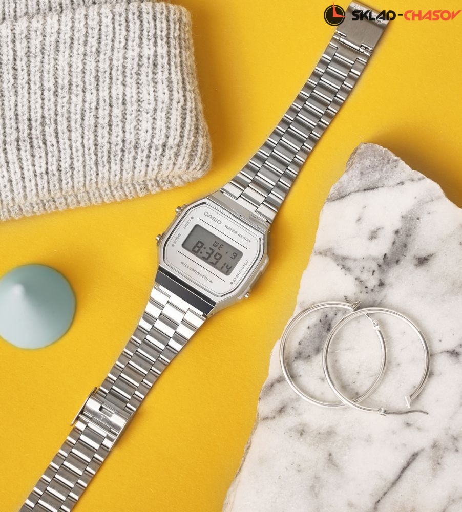Электронные кварцевые мужские наручные часы Casio Vintage A-168WEM-7E с цифровой индикацией времени. Калибр механизма — 3298. Функциональность данной модели: формат времени 12/24, автоматический календарь с установкой 28 дней на февраль, будильник, сигнал начала часа, секундомер с точностью 1/100 секунды и измерением до 59 минут 59,99 cек., электролюминесцентная подсветка циферблата.
