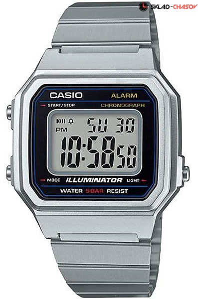 Электронные кварцевые мужские наручные часы Casio Vintage B650WD-1A с цифровой индикацией времени. Калибр механизма — 3454. Функциональность данной модели: формат времени 12/24, автоматический календарь, будильник, сигнал начала часа, секундомер с точностью 1/100 секунды и измерением до 59 минут 59,99 cек., диодная подсветка циферблата. Водонепроницаемость WR50 (5 атм).