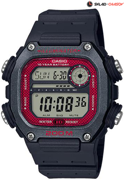 Электронные кварцевые мужские наручные часы Casio DW-291H-1B с цифровой индикацией времени. Калибр механизма — 3484. Функциональность данной модели: формат времени 12/24, мировое время 48 городов (31 часовой пояс), вечный календарь до 2099 года, 5 независимых будильников, сигнал начала часа, секундомер с точностью 1/100 секунды и измерением до 23 часов 59 минут 59,99 cек., таймер обратного отсчета (диапазон времени 24 часа), функция выключения звука кнопок (Mute), диодная подсветка циферблата. Батарейка на 10 лет работы. Водонепроницаемость WR200 (20 атм).