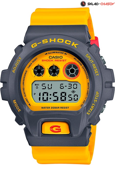 Противоударные мужские кварцевые наручные часы Casio DW-6900Y-9 коллекции G-Shock с цифровой индикацией времени. Калибр механизма — 3230. Функциональность данной модели: формат времени 12/24, вечный календарь до 2099 года, функция летнего времени (DST), многофункциональный будильник, сигнал начала часа, секундомер с точностью 1/100 секунды (для первых 60 минут), 1 секунда (после 60 минут) и измерением до 23 часов 59 минут 59,99 cек., таймер обратного отсчета (диапазон времени 24 часа), электролюминесцентная подсветка циферблата с функцией послесвечения. Водонепроницаемость WR200 (20 атм).