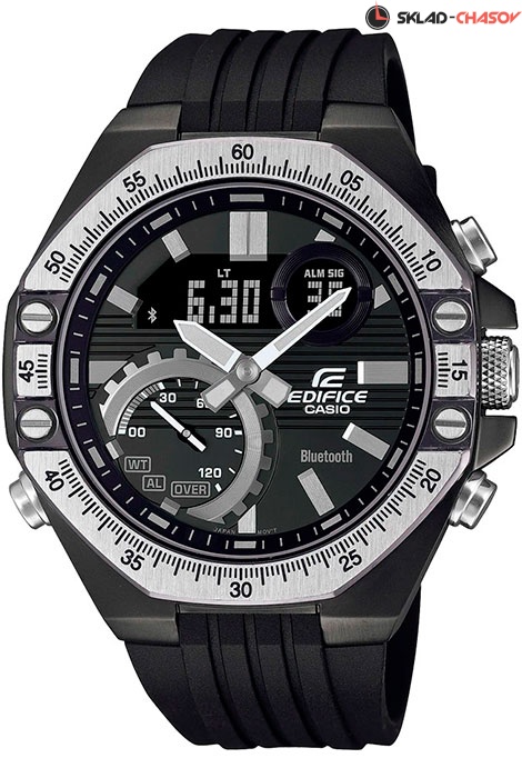 Кварцевые наручные часы Casio ECB-10TP-1A коллекции Edifice с технологией Bluetooth®. Калибр механизма — 5618. С помощью Bluetooth® вы можете подключить часы к смартфону и получить доступ к полезным функциям. Часы автоматически связываются с телефоном через Bluetooth® и проверяют точность времени 4 раза в сутки. Возможности Bluetooth в данной модели: С помощью специального приложения EDIFICE Connected возможно установить время в конкретном городе (300 городов), установить точное текущее время, установить будильник, просмотреть показания секундомера, подстроить положение стрелок. Функция поиска телефона - включение тонового сигнала на телефоне для быстрого поиска. Функциональность данной модели: индикация даты и дня недели (в том числе на Русском языке); мировое время в 38 городах (38 часовых поясов); вечный календарь до 2099 года; 5 независимых будильников и сигнал начала часа; секундомер с точностью 1/1000 сек. и измерением до 23 часов 59 минут 59 cек.; таймер обратного отсчета (диапазон времени 24 часа); двойная диодная подсветка циферблата с функцией авто (включается при наклоне часов на 40°) и возможностью выбора времени свечения (1.5 или 3 секунды) + необритовое (Neobrite) покрытие на стрелках и метках для длительного послесвечения в темноте; функция перемещения стрелок (помогает определить значения в окошках с цифровой индикацией, когда стрелки их закрывают); функция выключения звука нажатия кнопок; режим полёта (авиарежим). На корпус частично нанесено стойкое PVD покрытие. Полимерный ремешок. Водонепроницаемость WR100 (10 атм).