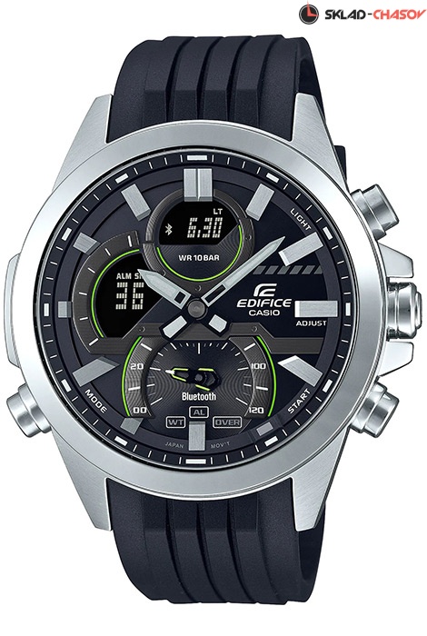 Мужские кварцевые часы Casio ECB-30P-1A коллекции Edifice с технологией Bluetooth®. Калибр механизма — 5686. С помощью Bluetooth® вы можете подключить часы к смартфону и получить доступ к полезным функциям. Часы автоматически связываются с телефоном через Bluetooth® и проверяют точность времени 4 раза в сутки. Возможности Bluetooth в данной модели: С помощью специального приложения CASIO WATCHES возможно установить время в конкретном городе (300 городов), установить точное текущее время, установить будильник, просмотреть показания секундомера, подстроить положение стрелок. Функция поиска телефона, можно включить тоновый сигнал на телефоне, что позволит быстро найти телефон. Функциональность данной модели: формат времени 12/24; мировое время в 38 городах (в 38 часовых поясах); вечный календарь до 2099 года (с возможностью отображения дня недели на одном из 6 языков, в том числе и на Русском языке), функция летнего времени (DST); 5 независимых будильников и сигнал начала часа; секундомер с точностью 1/1000 секунды (для первых 60 минут), 1/10 секунды (после 60 минут); таймер обратного отсчета (диапазон времени 24 часа); функция выключения звука нажатия кнопок (Mute); функция ручного перемещения стрелок (стрелки перемещаются в сторону, чтобы обеспечить беспрепятственный просмотр содержимого цифрового дисплея); функция "авиа режим"; функция сигнала по расписанию. Стрелки и метки покрыты необритовым (Neobrite) люминесцентным напылением (светятся в темноте). Полностью автоматическая двойная диодная подсветка циферблата (включается при недостаточном освещении и при наклоне часов на 40°) с возможностью выбора времени свечения (1.5 или 3 секунды). Полимерный ремешок. Водонепроницаемость WR100 (10 атм).