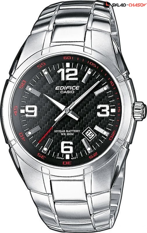 Мужские наручные часы Casio Edifice на стальном браслете. Необритовое светонакопительное покрытие обеспечивает длительное послесвечение в темноте даже после кратковременного нахождения на свету. Задняя крышка с винтовым фиксатором. Срок службы батареи 10 лет. Браслет с раскладывающейся застежкой. Вес 120 грамм. Гарантия 2 года. Функции: Число. Категория: 10-летняя батарея Комплектация: Часы, фирменная упаковка, фирменный пакет, инструкция на русском языке, заполненный гарантийный талон.
