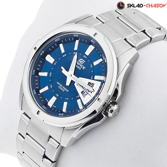 Мужские кварцевые наручные часы Casio EF-129D-2A коллекции Edifice. Калибр механизма — 5125. На данной модели отображается дата и день недели. Стрелки и метки покрыты люминесцентным напылением (светятся в темноте). Водонепроницаемость WR100 (10 атм). Завинчивающаяся задняя крышка.