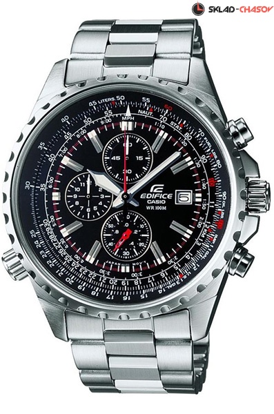 Мужские кварцевые наручные часы с хронографом (секундомером) Casio EF-527D-1A коллекции Edifice. Калибр механизма — 4369. На данной модели отображается дата. Секундомер может отсчитывать до 11 часов 59 минут 59 секунд с шагом 1/20 сек. Внутренний вращающийся безель с логарифмической линейкой. Стрелки и метки покрыты люминесцентным напылением (светятся в темноте). Водонепроницаемость WR100 (10 атм). Завинчивающаяся заводная головка и задняя крышка для более уверенной водонепроницаемости часов.