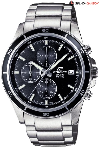 Мужские кварцевые наручные часы с хронографом (секундомером) Casio EFR-526D-1A коллекции Edifice. Калибр механизма — 5345. На данной модели отображается дата. Секундомер может отсчитывать до 59 минут 59 секунд с шагом 1/10 сек. Стрелки и метки покрыты люминесцентным напылением (светятся в темноте). На корпус частично нанесено стойкое PVD покрытие. Водонепроницаемость WR100 (10 атм). Завинчивающаяся задняя крышка.