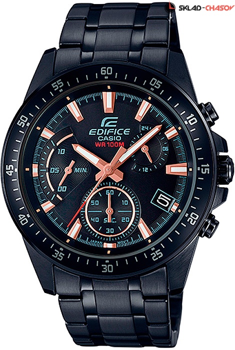 Мужские кварцевые наручные часы с хронографом (секундомером) Casio EFV-540DC-1B. Коллекция Edifice. Калибр механизма — 5563. На данной модели отображается дата и время суток в 24-х часовом формате. Секундомер может отсчитывать до 9 минут 59 секунд. Стрелки и метки покрыты люминесцентным напылением (светятся в темноте). На корпус и браслет часов нанесено стойкое PVD покрытие. Завинчивающаяся задняя крышка. Водонепроницаемость WR100 (10 атм).