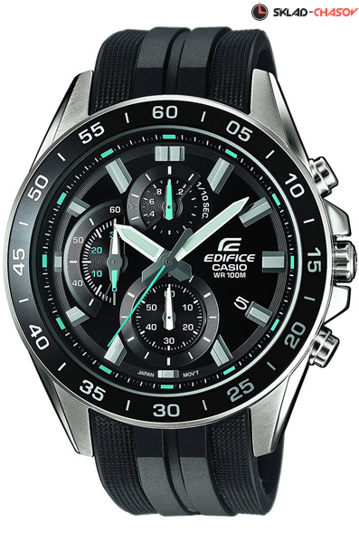 Мужские кварцевые наручные часы с хронографом (секундомером) Casio EFV-550P-1A. Коллекция Edifice. Калибр механизма — 5579. На данной модели отображается дата. Секундомер может отсчитывать до 59 минут 59 секунд с точностью 1/10 секунды. Стрелки покрыты люминесцентным напылением (светятся в темноте). На корпус частично нанесено стойкое PVD покрытие. Водонепроницаемость WR100 (10 атм). Завинчивающаяся задняя крышка.