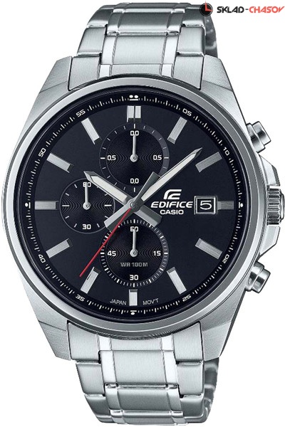 Мужские кварцевые наручные часы с хронографом (секундомером) Casio EFV-610D-1A коллекции Edifice. Калибр механизма — 5345. На данной модели отображается дата. Секундомер может отсчитывать до 59 минут 59 секунд с шагом 1/10 сек. Стрелки и метки покрыты люминесцентным напылением (светятся в темноте). Водонепроницаемость WR100 (10 атм). Завинчивающаяся задняя крышка.