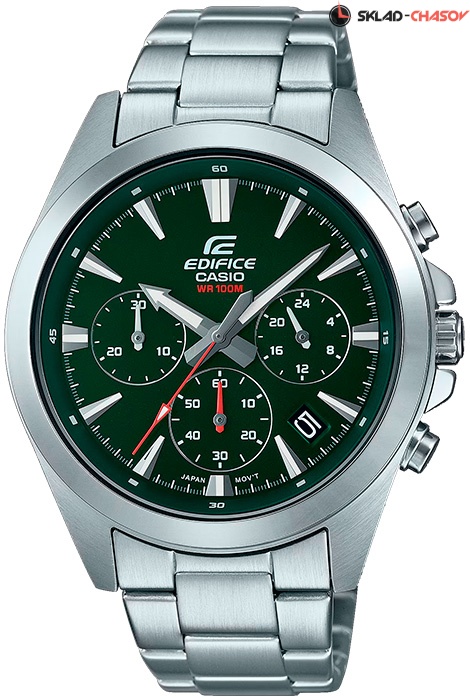 Мужские кварцевые наручные часы с хронографом (секундомером) Casio EFV-630D-3A. Коллекция Edifice. Калибр механизма — 5434. На данной модели отображается дата и время суток в 24-х часовом формате. Секундомер может отсчитывать до 29 минут 59 секунд с точностью 1 секунда. Стрелки и метки покрыты люминесцентным напылением (светятся в темноте). Завинчивающаяся задняя крышка. Водонепроницаемость WR100 (10 атм).