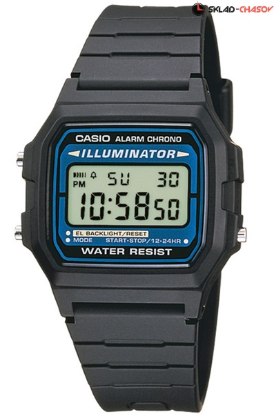 Электронные кварцевые мужские наручные часы Casio F-105W-1A с цифровой индикацией времени. Калибр механизма — 3298. Функциональность данной модели: формат времени 12/24, автоматический календарь с установкой 28 дней на февраль, будильник, сигнал начала часа, секундомер с точностью 1/100 секунды и измерением до 59 минут 59,99 cек., электролюминесцентная подсветка циферблата.