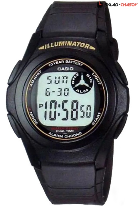 Мужские кварцевые наручные часы Casio F-200W-9A с цифровой индикацией времени. Калибр механизма — 3233. Функциональность данной модели: формат времени 12/24, двойное время, вечный календарь до 2099 года, будильник, сигнал начала часа, секундомер с точностью 1/100 секунды и измерением до 59 минут 59,99 cек., светодиодная подсветка циферблата. Водонепроницаемость WR (3 атм). Батарейка на 10 лет работы.
