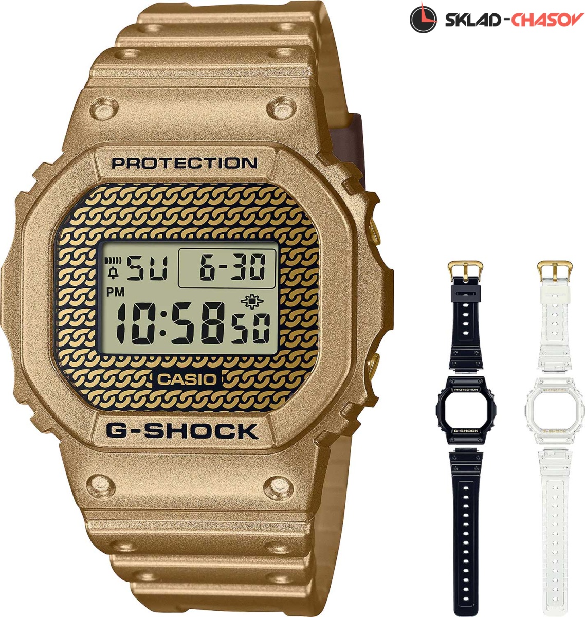 Многофункциональные часы идеально подойдут активным молодым парням, которые любят заниматься спортом. G-Shock. Новинка часов вдохновлена аксессуарами хип-хоп культуры и в частности цепочками из золота. Структура Carbon Core Guard. Противоударный пластиковый корпус с карбоновыми волокнами более прочный и в то же время более легкий. Этот же материал защищает внутренний модуль от повреждений и деформаций при ударах. Противоударный корпус защищает механизм от ударов и вибрации. Электролюминесцентная подсветка освещает весь циферблат, после отпускания кнопки свечение продолжается еще некоторое время. Световая индикация сигнала. Цвет подсветки: сине-зеленый. 12-ти и 24-х часовой формат времени. Секундомер с двумя точностями показаний: 1/100с (до 1ч) и 1с (после 1ч) и временем измерения 24ч. SPLIT-хронограф. Таймер обратного отсчета от 1с до 24ч с автоповтором. Типы сигналов: ежедневный, ежемесячный, каждый день определенного месяца, на определенную дату. Батарейка рассчитана на 2 года. Стальная задняя крышка крепится на 4-х винтах. Водонепроницаемость в соответствии с ISO 2281. Ремешок из полимерного материала с классической застежкой и возможностью быстрой замены. В комплекте 2 сменных ремешка и 2 безеля, которые позволяют создавать 27 различных комбинаций цветовых расцветок.