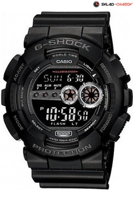 Противоударные кварцевые мужские наручные часы Casio GD-100-1B коллекции G-Shock с цифровой индикацией времени. Калибр механизма — 3263. Функциональность данной модели: формат времени 12/24, вечный календарь до 2099 года, функция летнего времени (DST), мировое время 48 городов (31 часовой пояс), 5 независимых будильников, сигнал начала часа, секундомер с точностью 1/100 секунды и измерением до 23 часов 59 минут 59,99 cек., таймер обратного отсчета (диапазон времени 24 часа), диодная подсветка циферблата с функцией авто (включается при наклоне часов на 40°), функция выключения звука кнопок (Mute). Водонепроницаемость WR200 (20 атм).