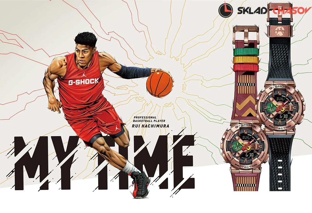 Лимитированная модель G-Shock создана совместно с Руи Хатимурой — японским баскетболистом, выступающим в НБА за клуб Washington Wizards. Противоударный корпус защищает механизм от ударов и вибрации. Защищены от магнитных полей. Циферблат подсвечивается светодиодом, при недостаточном освещении во время поворота запястья в сторону лица подсветка включается автоматически. Цвет подсветки: белый. Необритовое светонакопительное покрытие обеспечивает длительное послесвечение в темноте даже после кратковременного нахождения на свету. 12-ти и 24-х часовой формат времени. Секундомер с точностью показаний 1/100с и временем измерения 1000ч. SPLIT-хронограф. Таймер обратного отсчета от 1мин до 24ч. Мировое время – 48 городов (31 часовой пояс), всемирное координированное время (UTC). Функция включения/отключения летнего времени. Функция отключения/включения звука. 5 будильников, один с функцией Snooze, ежечасный сигнал. Ремешок из полимерного материала с классической застежкой. Вес 93 грамма. Гарантия 2 года.