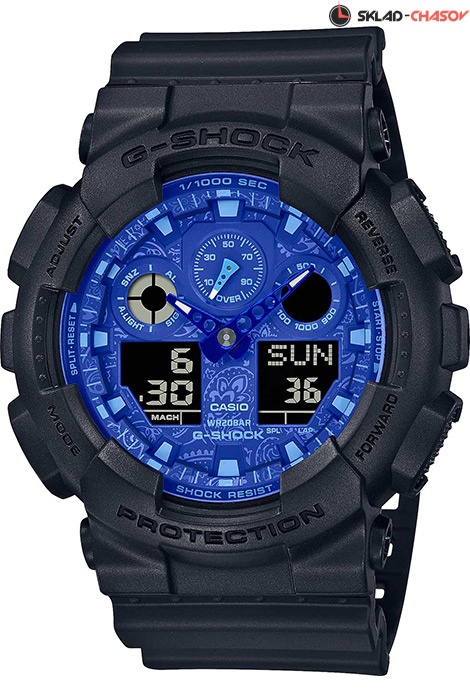 Противоударные кварцевые мужские наручные часы Casio GA-100BP-1A коллекции G-Shock цифровой+стрелочной индикацией времени. Калибр механизма — 5081. Функциональность данной модели: формат времени 12/24, вечный календарь до 2099 года, функция летнего времени (DST), мировое время 48 городов (29 часовых поясов), 5 независимых будильников, сигнал начала часа, секундомер с точностью 1/1000 секунды и измерением до 99 часов 59 минут 59,99 cек., функция расчета средней скорости движения, таймер обратного отсчета (диапазон времени 24 часа), диодная подсветка циферблата с возможность выбора времени свечения (1.5 или 3 секунды). Инверсный дисплей. Водонепроницаемость WR200 (20 атм).
