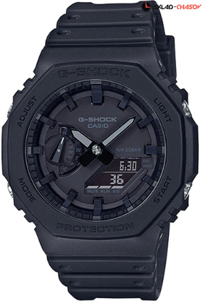 Противоударные кварцевые мужские наручные часы Casio GA-2100-1A1 коллекции G-Shock с цифровой+стрелочной индикацией времени. Тонкий корпус для данной коллекции — 11.8 мм. Калибр механизма — 5611. Корпус усилен углеродным волокном. Функциональность данной модели: формат времени 12/24, вечный календарь до 2099 года, функция летнего времени (DST), мировое время 48 городов (29 часовых поясов), 5 независимых будильников, сигнал начала часа, секундомер с точностью 1/100 секунды и измерением до 23 часов 59 минут 59 cек., таймер обратного отсчета (диапазон времени 24 часа), диодная подсветка циферблата, функция выключения звука кнопок (Mute), смещение стрелок для удобного просмотра информации на цифровом экране. Водонепроницаемость WR200 (20 атм).