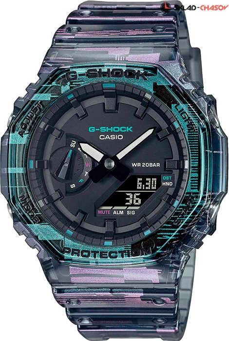 Противоударные кварцевые мужские наручные часы Casio GA-2100NN-1A коллекции G-Shock с цифровой+стрелочной индикацией времени. Тонкий корпус для данной коллекции — 11.8 мм. Калибр механизма — 5611. Корпус усилен углеродным волокном, изготовленным по технологии Carbon Core Guard. Функциональность данной модели: формат времени 12/24, вечный календарь до 2099 года, функция летнего времени (DST), мировое время 48 городов (29 часовых поясов), 5 независимых будильников, сигнал начала часа, секундомер с точностью 1/100 секунды и измерением до 23 часов 59 минут 59 cек., таймер обратного отсчета (диапазон времени 24 часа), диодная подсветка циферблата, функция выключения звука кнопок (Mute), смещение стрелок для удобного просмотра информации на цифровом экране. Водонепроницаемость WR200 (20 атм).