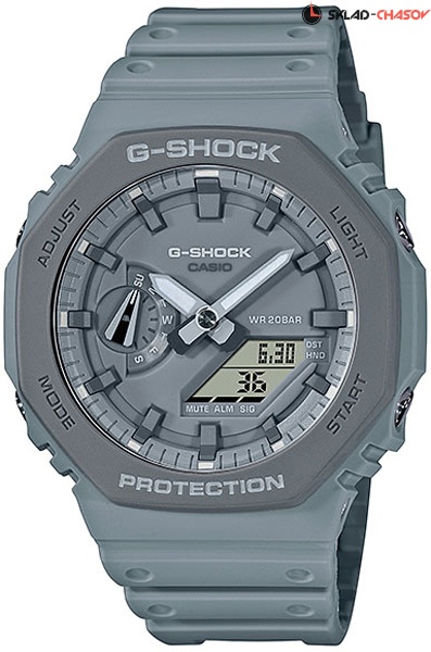Противоударные кварцевые мужские наручные часы Casio GA-2110ET-8A коллекции G-Shock с цифровой+стрелочной индикацией времени. Тонкий корпус для данной коллекции — 11.8 мм. Калибр механизма — 5611. Корпус усилен углеродным волокном. Функциональность данной модели: формат времени 12/24, вечный календарь до 2099 года, функция летнего времени (DST), мировое время 48 городов (29 часовых поясов), 5 независимых будильников, сигнал начала часа, секундомер с точностью 1/100 секунды и измерением до 23 часов 59 минут 59 cек., таймер обратного отсчета (диапазон времени 24 часа), диодная подсветка циферблата, функция выключения звука кнопок (Mute), смещение стрелок для удобного просмотра информации на цифровом экране. Водонепроницаемость WR200 (20 атм).