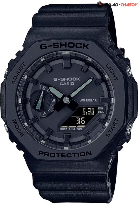 Противоударные мужские кварцевые наручные часы Casio GA-2140RE-1A коллекции G-Shock с цифровой+стрелочной индикацией времени. Лимитированная серия, повященная 40-летию бренда G-Shock. Выпущено ограниченное количество экземпляров данных моделей часов. Тонкий корпус для данной коллекции — 11.8 мм. Калибр механизма — 5611. Корпус усилен углеродным волокном, изготовленным по технологии Carbon Core Guard. Функциональность данной модели: формат времени 12/24, вечный календарь до 2099 года, функция летнего времени (DST), мировое время 48 городов (31 часовом поясе), двойное время, 5 независимых будильников, сигнал начала часа, секундомер с точностью 1/100 секунды и измерением до 23 часов 59 минут 59 cек., таймер обратного отсчета (диапазон времени 24 часа), двойная диодная подсветка циферблата с возможностью выбора времени свечения (1.5 или 3 секунды), функция выключения звука нажатия кнопок (Mute), смещение стрелок для удобного просмотра информации на цифровом экране. Стрелки и метки покрыты люминисцентным напылением (светятся в темноте). Водонепроницаемость WR200 (20 атм).
