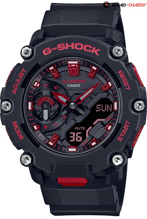 Противоударные кварцевые наручные часы Casio GA-2200BNR-1A коллекции G-Shock с цифровой+стрелочной индикацией времени. Калибр механизма — 5674. Корпус усилен углеродным волокном, изготовленным по технологии Carbon Core Guard. Функциональность данной модели: формат времени 12/24, вечный календарь до 2099 года, функция летнего времени (DST), мировое время 48 городов (31 часовом поясе), двойное время, 5 независимых будильников, сигнал начала часа, секундомер с точностью 1/100 секунды и измерением до 23 часов 59 минут 59 cек., таймер обратного отсчета (диапазон времени 24 часа), двойная диодная подсветка циферблата с возможностью выбора времени свечения (1.5 или 3 секунды), функция выключения звука нажатия кнопок (Mute), смещение стрелок для удобного просмотра информации на цифровом экране. Стрелки и метки покрыты люминисцентным напылением (светятся в темноте). Водонепроницаемость WR200 (20 атм).