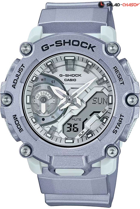 Противоударные кварцевые наручные часы Casio GA-2200FF-8A коллекции G-Shock с цифровой+стрелочной индикацией времени. Калибр механизма — 5674. Корпус усилен углеродным волокном, изготовленным по технологии Carbon Core Guard. Функциональность данной модели: формат времени 12/24, вечный календарь до 2099 года, функция летнего времени (DST), мировое время 48 городов (31 часовом поясе), двойное время, 5 независимых будильников, сигнал начала часа, секундомер с точностью 1/100 секунды и измерением до 23 часов 59 минут 59 cек., таймер обратного отсчета (диапазон времени 24 часа), двойная диодная подсветка циферблата с возможностью выбора времени свечения (1.5 или 3 секунды) + необритовое (Neobrite) покрытие на стрелках и метках для длительного послесвечения в темноте, функция выключения звука нажатия кнопок (Mute), функция смещения стрелок для удобного просмотра информации на цифровом экране. Водонепроницаемость WR200 (20 атм).