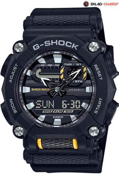 Противоударные кварцевые мужские наручные часы Casio GA-900-1A коллекции G-Shock с цифровой+стрелочной индикацией времени. Калибр механизма — 5637. Функциональность данной модели: формат времени 12/24; вечный календарь до 2099 года; функция летнего времени (DST); мировое время 48 городов (29 часовых поясов); 5 независимых будильников; сигнал начала часа; секундомер с точностью 1/100 секунды и измерением до 23 часов 59 минут 59,99 cек.; таймер обратного отсчета (диапазон времени 60 минут); диодная подсветка циферблата; функция выключения звука кнопок (Mute); смещение стрелок для удобного просмотра информации на цифровом экране. Водонепроницаемость WR200 (20 атм).