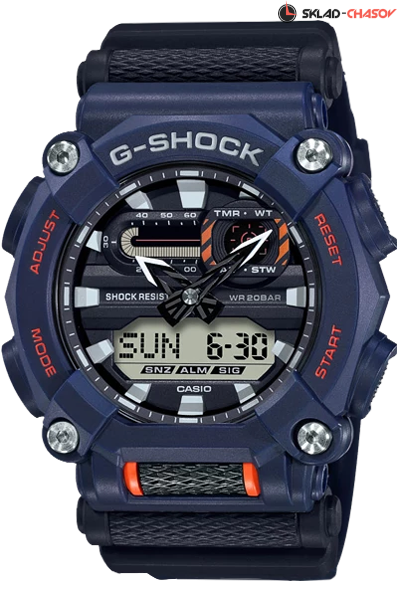 Противоударные кварцевые мужские наручные часы Casio GA-900-2A коллекции G-Shock с цифровой+стрелочной индикацией времени. Калибр механизма — 5637. Функциональность данной модели: формат времени 12/24; вечный календарь до 2099 года; функция летнего времени (DST); мировое время 48 городов (29 часовых поясов); 5 независимых будильников; сигнал начала часа; секундомер с точностью 1/100 секунды и измерением до 23 часов 59 минут 59,99 cек.; таймер обратного отсчета (диапазон времени 60 минут); диодная подсветка циферблата; функция выключения звука кнопок (Mute); смещение стрелок для удобного просмотра информации на цифровом экране. Водонепроницаемость WR200 (20 атм).