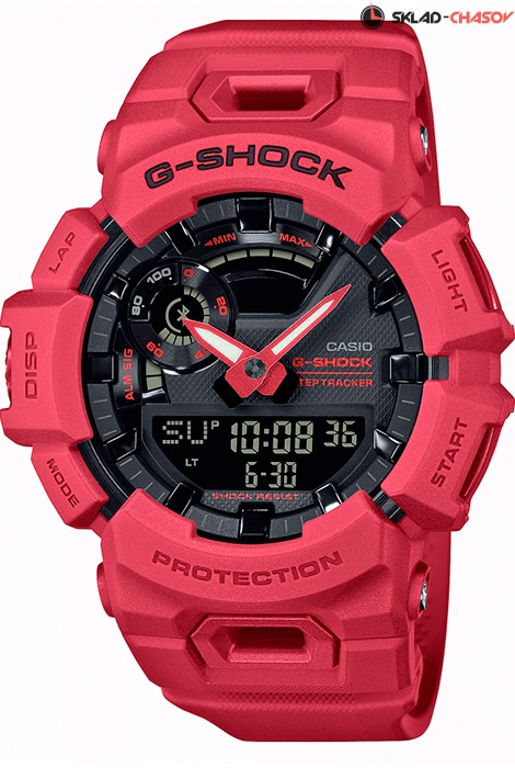 Противоударные кварцевые наручные часы Casio GBA-900RD-4A коллекции G-Shock с модулем Bluetooth Smart. Калибр механизма — 5641. Данная модель предназначена для занятия бегом и оснащена трехосевым акселерометром для точности считывания движений человека в пространстве. С помощью синхронизации со смартфоном через модуль Bluetooth и приложения G-SHOCK Move® можно увидеть график активности в метаболическом эквиваленте за день, неделю или месяц. Во время бега часы измеряют не только пройденные шаги, но и дистанцию, затраченные калории и определяют скоростной режим. В приложении G-Shock Move отображается пятиступенчатая шкала интенсивности тренировок с отслеживанием дневной активности. Здесь также можно задавать цели для лучшей мотивации. Для интервальных тренировок предусмотрен таймер (5 наборов по 20 сетов) с автоповтором и отложенным стартом и память на 45 кругов для секундомера. Для секундомера предел измерения составляет 24 часа (с точностью 1/100 секунды). Функциональность данной модели: шагомер, формат времени 12/24, вечный календарь до 2099 года, функция летнего времени (DST), функция мирового времени, 5 независимых будильников, сигнал начала часа, таймер (5 наборов по 20 сетов), секундомер с точностью 1/100 секунды и измерением до 23 часов 59 минут 59,99 cек. и записью данных (до последних 45 записей: месяц начала измерения, дата, час, минута, время прохождения круга / разделения, общее время, дистанция, средний темп, сожженные калории, номер круга, времядистанция, средний темп каждого круга / разделения), двойная диодная подсветка циферблата с возможностью выбора времени свечения (1.5 или 3 секунды) + необритовое (Neobrite) покрытие на стрелках для длительного послесвечения в темноте, функция выключения звука кнопок (Mute), функция сдвига стрелок в нейтральное положение для удобства обзора цифровой индикации, индикация входящих вызовов, функция поиска телефона - при нажатии кнопки на ваших часах смартфон подает звуковой сигнал. Имеется индикатор низкого уровня заряда батареи. Водонепроницаемость WR200 (20 атм).