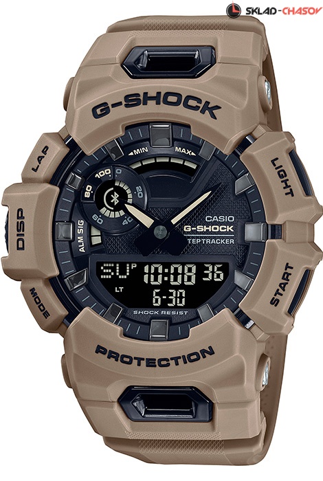 Противоударные кварцевые наручные часы Casio GBA-900UU-5A коллекции G-Shock с модулем Bluetooth Smart. Калибр механизма — 5641. Данная модель предназначена для занятия бегом и оснащена трехосевым акселерометром для точности считывания движений человека в пространстве. С помощью синхронизации со смартфоном через модуль Bluetooth и приложения G-SHOCK Move® можно увидеть график активности в метаболическом эквиваленте за день, неделю или месяц. Во время бега часы измеряют не только пройденные шаги, но и дистанцию, затраченные калории и определяют скоростной режим. В приложении G-Shock Move отображается пятиступенчатая шкала интенсивности тренировок с отслеживанием дневной активности. Здесь также можно задавать цели для лучшей мотивации. Для интервальных тренировок предусмотрен таймер (5 наборов по 20 сетов) с автоповтором и отложенным стартом и память на 45 кругов для секундомера. Для секундомера предел измерения составляет 24 часа (с точностью 1/100 секунды). Функциональность данной модели: шагомер, формат времени 12/24, вечный календарь до 2099 года, функция летнего времени (DST), функция мирового времени, 5 независимых будильников, сигнал начала часа, таймер (5 наборов по 20 сетов), секундомер с точностью 1/100 секунды и измерением до 23 часов 59 минут 59,99 cек. и записью данных (до последних 45 записей: месяц начала измерения, дата, час, минута, время прохождения круга / разделения, общее время, дистанция, средний темп, сожженные калории, номер круга, времядистанция, средний темп каждого круга / разделения), двойная диодная подсветка циферблата с возможностью выбора времени свечения (1.5 или 3 секунды) + необритовое (Neobrite) покрытие на стрелках для длительного послесвечения в темноте, функция выключения звука кнопок (Mute), функция сдвига стрелок в нейтральное положение для удобства обзора цифровой индикации, индикация входящих вызовов, функция поиска телефона - при нажатии кнопки на ваших часах смартфон подает звуковой сигнал. Имеется индикатор низкого уровня заряда батареи. Водонепроницаемость WR200 (20 атм).