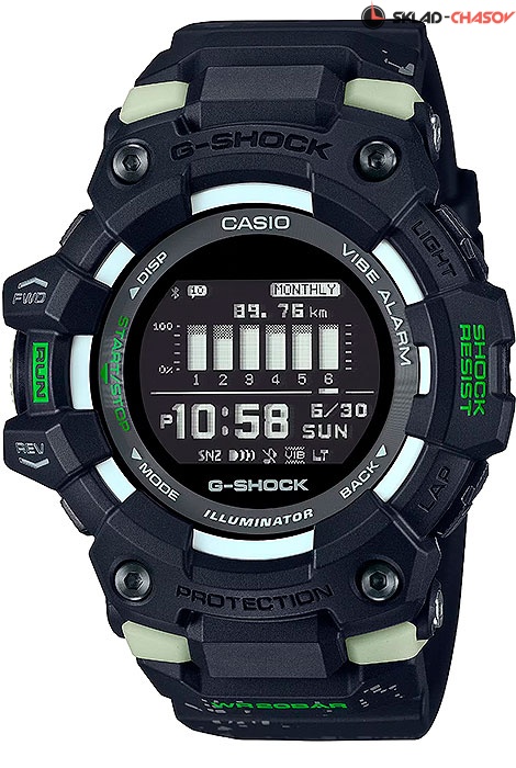 Противоударные кварцевые мужские наручные часы Casio GBD-100LM-1 коллекции G-Shock с цифровой индикацией времени, функцией шагомера и технологией Bluetooth® Smart. Калибр механизма — 3481. С помощью Bluetooth® вы можете подключить часы к смартфону и с помощью приложения G-SHOCK Move® получить доступ к полезным функциям. Часы автоматически связываются с телефоном через Bluetooth® и проверяют точность времени 4 раза в сутки. Просмотр количества шагов за 24 часа, интенсивность упражнений и физических нагрузок. Просмотр еженедельного количества шагов и числа сожженных калорий. Просмотр информации секундомера о времени прохождения кругов или промежуточных результатах (до 100 записей). Настройка мирового времени (300 городов). Функция поиска телефона, можно включить тоновый сигнал на телефоне, что позволит быстро найти телефон. Функциональность данной модели: формат времени 12/24, вечный календарь до 2099 года, мировое время в 38 городах (38 часовых поясов); функция летнего времени (DST), функция двойного времени, 4 независимых будильника, сигнал начала часа, секундомер с измерением до 100 часов, память на 100 кругов (100 записей), 5 независимых таймеров обратного отсчета (диапазон времени 60 минут), диодная подсветка циферблата с функцией авто (включается при наклоне часов на 40°) и возможностью выбора времени свечения (1.5 или 3 секунды), режим выключения звука нажатия кнопок (Mute), режим энергосбережения (дисплей гаснет для экономии энергии на 3 часа каждый день), режим полета (авиа режим). Журнал тренировок: ежедневное отображение данных (количество шагов), ежемесячное отображение данных (пробег), данные о тренировках (до 100 пробежек, до 140 кругов за пробежку), затраченное время, дистанция, темп, сожженные калории. Уведомления с функцией вибро о новых/пропущенных звонках, сообщениях, email письмах и напоминаний из расписания. Водонепроницаемость WR200 (20 атм).
