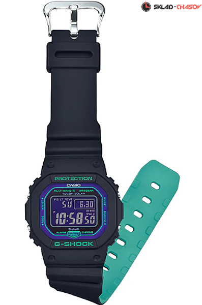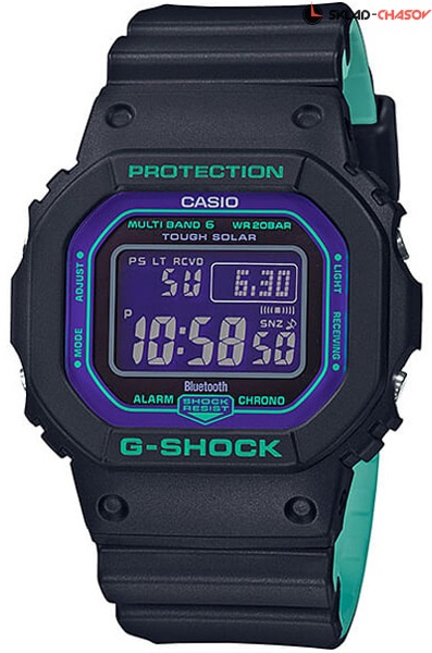Противоударные кварцевые мужские наручные часы Casio GW-B5600BL-1 коллекции G-Shock с технологией Bluetooth® и радиоконтролем точного времени. Калибр механизма — 3461. Аккумулятор данной модели заряжается от любого источника света. Срок работы аккумулятора с полным зарядом — около 6-ти месяцев. Примерный срок службы аккумулятора — 10 лет. С помощью Bluetooth® вы можете подключить часы к смартфону и с помощью приложения G-SHOCK Connected получить доступ к полезным функциям. Часы автоматически связываются с телефоном через Bluetooth® и проверяют точность времени 4 раза в сутки. Возможность создать до 5-ти напоминаний (запланированная встреча, годовщина или другое событие). Настройка мирового времени (300 городов). Функция поиска телефона, можно включить тоновый сигнал на телефоне, что позволит быстро найти телефон. Запись текущего местоположения (TIME & PLACE). Настройка и управление таймеров, секундомером и будильником. Можно проверить уровень заряда аккумулятора. Функциональность данной модели: радиоконтроль точного времени (Wave Ceptor), формат времени 12/24, вечный календарь до 2099 года, возможность установки индикации дня недели на Русский язык, функция летнего времени (DST), функция мирового времени времени (39 городов), 5 независимых будильников, сигнал начала часа, секундомер с измерением до 23 часов 59 минут 59 cек., таймер обратного отсчета (диапазон времени 24 часа), диодная подсветка циферблата с функцией авто (включается при наклоне часов на 40°) и регулировкой времени подсветки 2 или 4 секунды, режим выключения звука нажатия кнопок (Mute), режим сохранения энергии. Водонепроницаемость WR200 (20 атм).