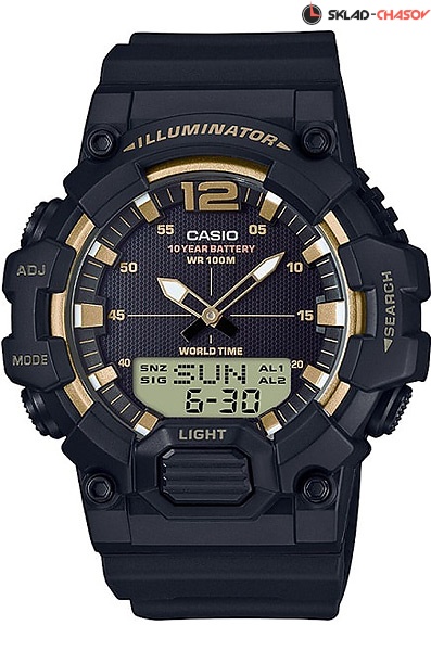 Кварцевые мужские наручные часы Casio HDC-700-9A с цифровой+стрелочной индикацией времени. Калибр механизма — 5565. Функциональность данной модели: формат времени 12/24, функция летнего времени (DST), мировое время 30 городов (29 часовых поясов), вечный календарь до 2099 года, 3 независимых будильника, сигнал начала часа, секундомер с точностью 1/100 секунды и измерением до 23 часов 59 минут 59,99 cек., таймер обратного отсчета (диапазон времени 24 часа), записная книжка телефонных номеров на 30 записей, диодная подсветка циферблата и люминесцентное напыление на стрелках и метках часов. Водонепроницаемость WR100 (10 атм). Батарейка на 10 лет работы.
