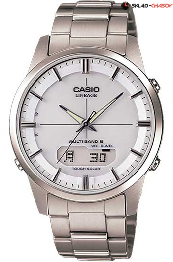 Кварцевые мужские титановые наручные часы на солнечной батарее Casio LCW-M170TD-7A с радиоконтролем. Калибр механизма — 5161. Функциональность данной модели: режим сохранения энергии, индикатор заряда батареи, радиоконтроль точного времени (Wave Ceptor), функция летнего времени (DST), мировое время 29 городов (29 часовых поясов), вечный календарь до 2099 года (индикация даты и дня недели), 5 независимых будильников, сигнал начала часа, секундомер с измерением до 59 минут 59.99 cек., таймер обратного отсчета (диапазон времени 100 минут), диодная подсветка циферблата и люминесцентное напыление на стрелках, функция выключения звука кнопок (Mute).