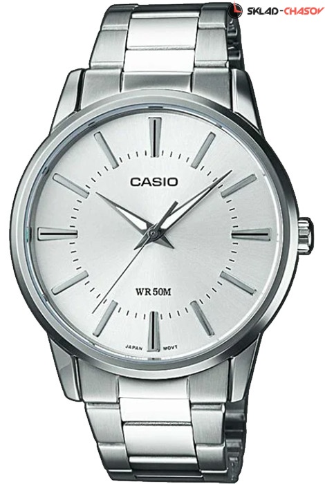 Мужские кварцевые наручные часы Casio MTP-1303D-7A. Калибр механизма — 1330. Стрелки покрыты люминесцентным напылением (светятся в темноте). Стальной браслет. Водонепроницаемость WR50 (5 атм).