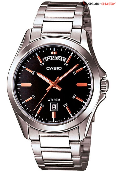 Мужские кварцевые наручные часы Casio MTP-1370D-1A2. Калибр механизма — 5336. На данной модели отображается день недели и текущая дата. Стрелки покрыты люминесцентным напылением (светятся в темноте). Стальной браслет. Водонепроницаемость WR50 (5 атм).