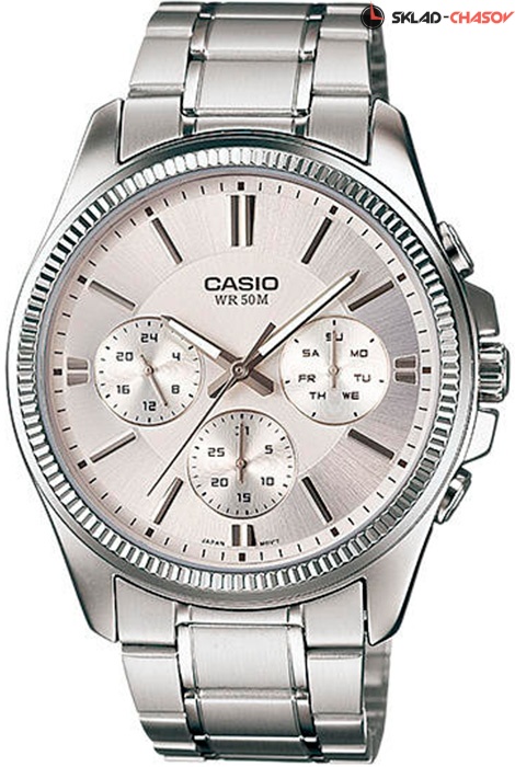 Мужские кварцевые наручные часы Casio MTP-1375D-7A. Калибр механизма — 5374. На данной модели отображается дата, день недели и время суток (24-х часовая шкала). Стрелки покрыты люминесцентным напылением (светятся в темноте). Стальной браслет. Водонепроницаемость WR50 (5 атм).