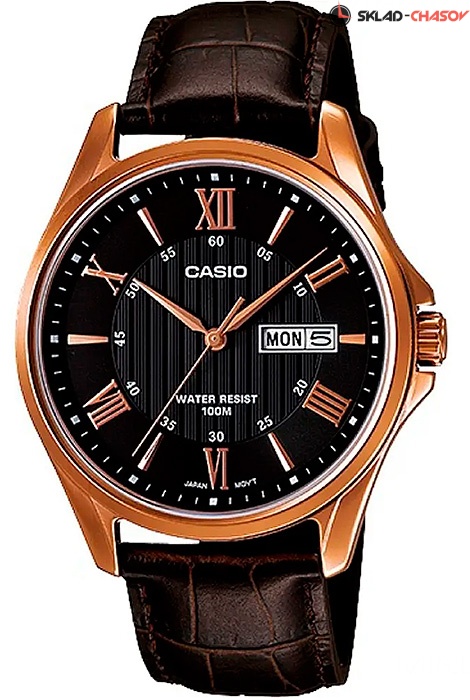Мужские кварцевые наручные часы Casio MTP-1384L-1A. Калибр механизма — 5339. На данной модели отображается день недели и текущая дата. На корпус нанесено стойкое PVD покрытие. Кожаный ремешок. Водонепроницаемость WR100 (10 атм).