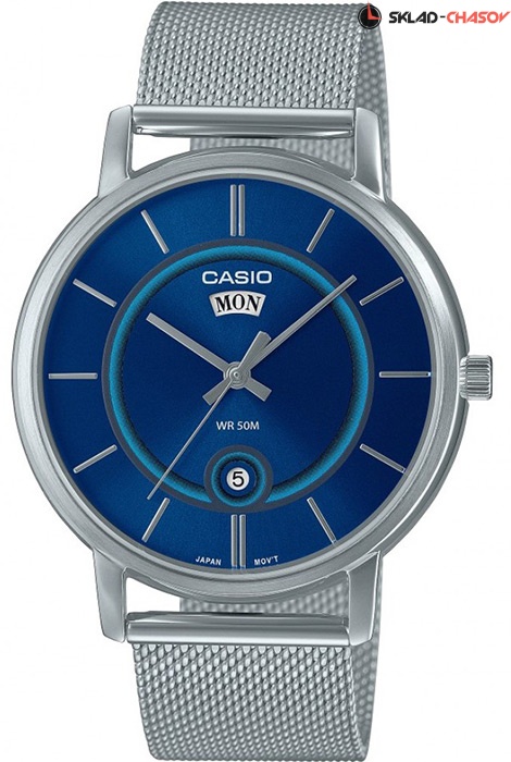 Мужские кварцевые наручные часы Casio MTP-B120M-2A. Калибр механизма — 5703. На данной модели отображается день недели и текущая дата. Стальной браслет миланского плетения. Водонепроницаемость WR50 (5 атм).