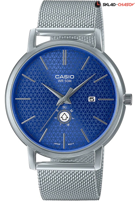 Мужские кварцевые наручные часы Casio MTP-B125M-2A. Калибр механизма — 5704. На данной модели отображается день недели и текущая дата. Стальной браслет миланского плетения. Водонепроницаемость WR50 (5 атм).