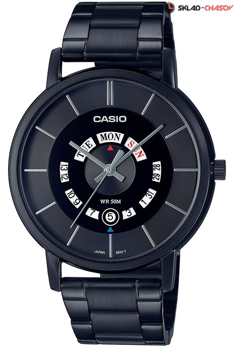 Мужские кварцевые наручные часы Casio MTP-B135B-1A. Калибр механизма — 5703. На данной модели отображается день недели и текущая дата. Стальной браслет. На корпус и браслет нанесено стойкое PVD покрытие. Водонепроницаемость WR50 (5 атм).