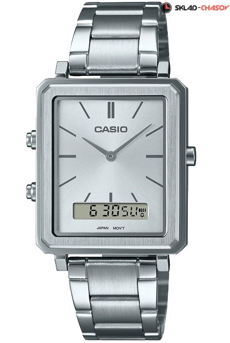Мужские кварцевые наручные часы Casio MTP-B205D-7E с цифровой+стрелочной индикацией времени. Калибр механизма — 5154. Функциональность данной модели: формат времени 12/24, вечный календарь, двойное время, будильник, сигнал начала часа, секундомер с точностью 1/100 секунды и измерением до 59 минут 59 cек. Стальной браслет. Водонепроницаемость WR (3 атм).