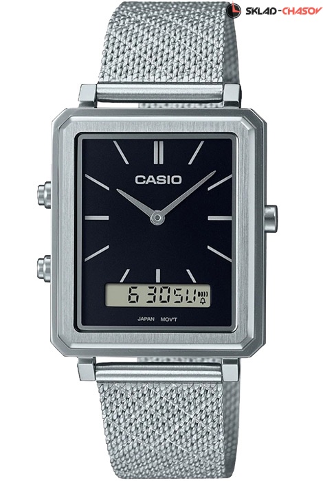 Мужские кварцевые наручные часы Casio MTP-B205M-1E с цифровой+стрелочной индикацией времени. Калибр механизма — 5154. Функциональность данной модели: формат времени 12/24, вечный календарь, двойное время, будильник, сигнал начала часа, секундомер с точностью 1/100 секунды и измерением до 59 минут 59 cек. Стальной браслет миланского плетения. Водонепроницаемость WR (3 атм).