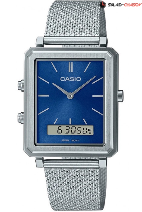Мужские кварцевые наручные часы Casio MTP-B205M-2E с цифровой+стрелочной индикацией времени. Калибр механизма — 5154. Функциональность данной модели: формат времени 12/24, вечный календарь, двойное время, будильник, сигнал начала часа, секундомер с точностью 1/100 секунды и измерением до 59 минут 59 cек. Стальной браслет миланского плетения. Водонепроницаемость WR (3 атм).