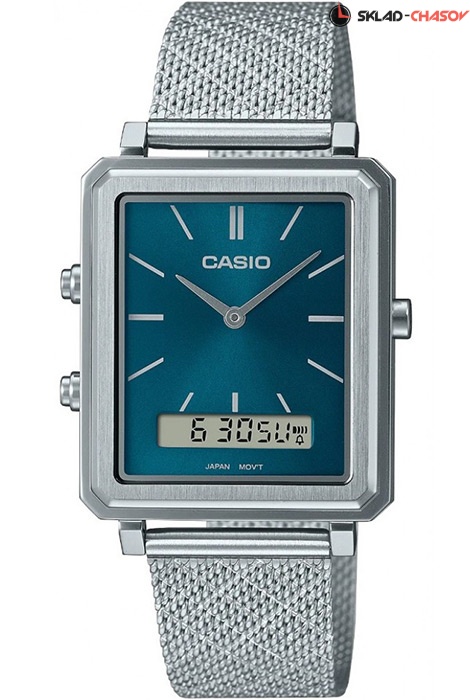 Мужские кварцевые наручные часы Casio MTP-B205M-3E с цифровой+стрелочной индикацией времени. Калибр механизма — 5154. Функциональность данной модели: формат времени 12/24, вечный календарь, двойное время, будильник, сигнал начала часа, секундомер с точностью 1/100 секунды и измерением до 59 минут 59 cек. Стальной браслет миланского плетения. Водонепроницаемость WR (3 атм).