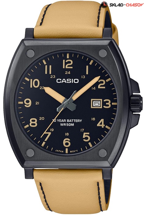 Мужские кварцевые наручные часы Casio MTP-E715L-5A. Калибр механизма — 2719. На данной модели отображается текущая дата. Стрелки покрыты люминесцентным напылением (светятся в темноте). Кожаный ремешок. На корпус нанесено стойкое PVD покрытие. Батарейка на 10 лет работы. Водонепроницаемость WR50 (5 атм).