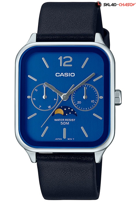 Кварцевые наручные часы Casio MTP-M305L-2A. Калибр механизма — 3744. На данной модели отображается день недели, текущая дата и фаза луны. Кожаный ремешок. Водонепроницаемость WR50 (5 атм).