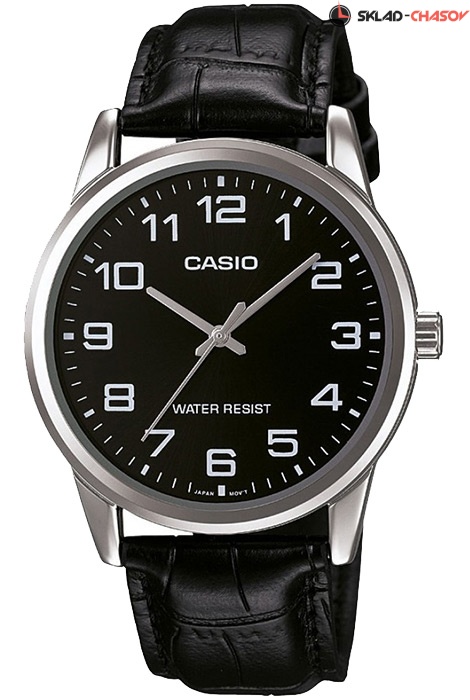 Мужские кварцевые наручные часы Casio MTP-V001L-1B. Калибр механизма — 5361. Кожаный ремешок. Водонепроницаемость WR (3 атм).