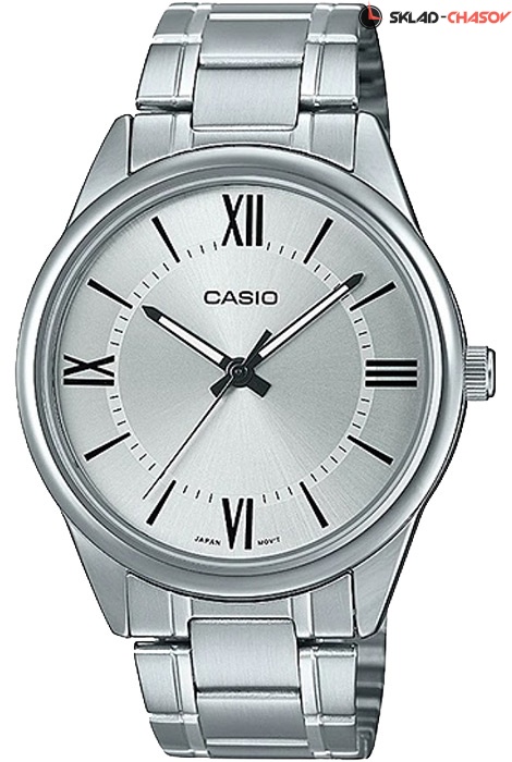 Мужские кварцевые наручные часы Casio MTP-V005D-7B5. Калибр механизма — 5361. Стрелки покрыты люминесцентным напылением (светятся в темноте). Стальной браслет. Водонепроницаемость WR (3 атм).