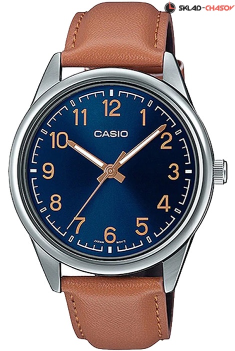Мужские кварцевые наручные часы Casio MTP-V005L-2B4. Калибр механизма — 5361. Стрелки покрыты люминесцентным напылением (светятся в темноте). Кожаный ремешок. Водонепроницаемость WR (3 атм).